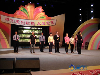 5月20号下午,市作风办、团市委办主办的“作风优化环境”电视即兴演讲大赛总决赛在温州广电总台一楼演播大厅举行。进入决赛的十位选手,通过5分钟的即兴演讲充分展示了作为新一代机干部的良好面貌。最后,来自龙湾区的王巧荣和市广播电视总台的夏旻并列获得冠军。