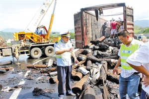 温州网讯昨日凌晨5时,诸永高速公路一货车车轮自燃并引发车厢起火事故,导致车上价值500余万元的布匹和服装付之一炬。