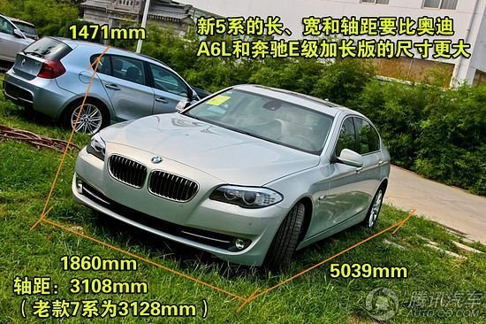 整车外形设计方面,新款5系的在车头设计与老款稍有区别,发动机盖四条凸起的线条,给人以强劲的力量感。双肾形格栅变得比老款车型更为宽大,仔细观察,其格栅竖条变得更宽、格栅切面更为垂直,这样的做法能在碰撞发生时减小对行人的冲击。新5系的车身达到5039mm×1860mm×1471mm轴距3108mm,相比于竞争对手有着一定优势。老款E66的7系轴距尺寸不过才3128mm,只比新5系长了2厘米而已。