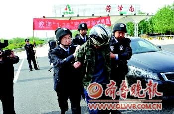 犯罪嫌疑人穆某被押解回定陶。本报通讯员朱建英摄
