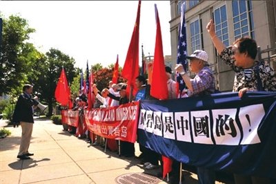 在此之前,一个名为“华盛顿华人捍卫南海主权行动委员会”发出5月13日在菲律宾驻美国大使馆开展示威活动倡议。倡议说,“我们虽然与祖国远隔万水千山,但在我们身上依然奔流着中华民族的热血,对祖国的每一寸土地都充满深深的爱。当祖国领土遭受外来侵犯的时候,我中华儿女无论身处何地,皆应挺身而出。”