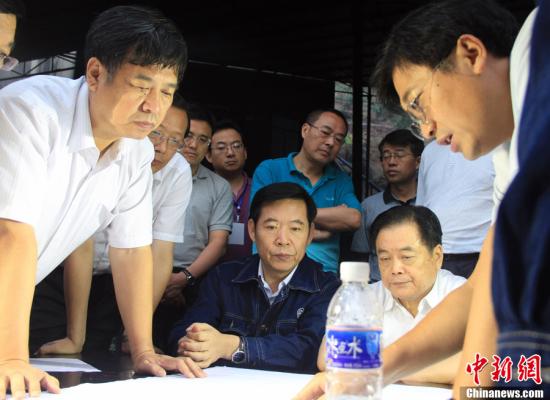 截至8月30日9时,四川攀枝花市肖家湾煤矿瓦斯爆炸事故已造成19人遇难,仍有28人被困井下。图为相关领导正在救援现场研究救援方案。刘忠俊 摄