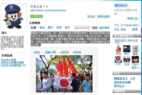 在网上,三地两岸明星也纷纷呼吁理性爱国,不要伤害手足同胞。崔永元、何炅、徐静蕾、刘晓庆、小沈阳、阿朵等相继在微博中呼吁国人要理性。
