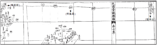 清朝时期,同治二年也就是1863年刻的《皇朝中外一统舆图》,上有“高宗纯皇帝御制诗”及“乾隆丙子夏六月御题”,可以证明这是清朝乾隆皇帝钦准的官版地图。从其中的《大清一统舆图》(局部)(上图)可以看出,由福建梅花所至琉球那霸港,中经东沙、小琉球、彭佳山、钓鱼屿(即钓鱼岛)、黄尾屿、赤尾屿,都是只有中文名字;自姑米山起,即附有琉球译名,其图案由圆形变为椭圆形,由此可见,中琉之间的地方分界线在赤尾屿与姑米山之间。(记者 吕德胜 通讯员 范小敏)