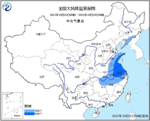 中新网10月22日电 据中央气象台预报,受中等强度冷空气影响,预计22日,东北地区东南部、黄淮中东部、江淮、江南北部等地将先后出现6~8℃降温。上述大部地区将先后出现4~6级风。渤海将有6~7级、阵风8~9级的西北风转5~6级西南风,渤海海峡将有5~7级西北风,黄海大部将有6~7级、阵风8~9级的西北风,东海大部海域将有5~6级偏南风转6~7级、阵风8级的偏北风。