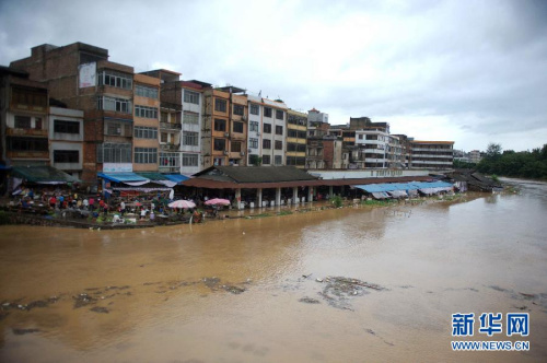 10月30日,台风“山神”带来的强降雨使广西北流市隆盛集市被淹