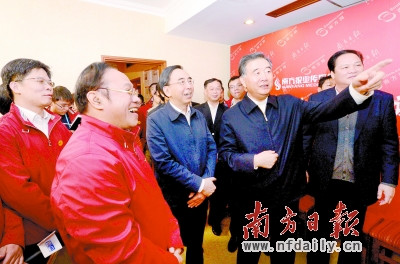 汪洋对南方报业用全媒体手段报道十八大十分关注。“你们南都做的移动客户端很好,我常看。”