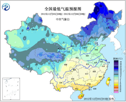 中新网12月5日电 据中央气象台预报,今天白天和6-8日,有两股弱冷空气影响中国北部和东部地区,西北地区东部、内蒙古大部、东北南部、华北、黄淮、江淮、新疆西北部等地有4~8℃降温,上述地区并伴有4~6级偏北风,新疆山口地区风力可达7~8级。受冷空气影响,渤海、黄海、东海有6~8级风,阵风可达9~10级。
