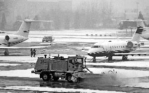 昨天,在首都机场,除雪车辆在清扫停机坪上的积雪。当天的降雪未对机场起降航班造成太大影响。首席摄影记者蔡代征/摄