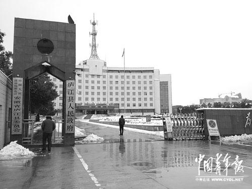 庐江县政府大门。在这里财产申报与公开已经悄然进行了近一年半的时间。本报记者刘星摄