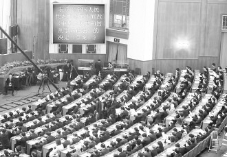 图为2012年3月14日,十一届全国人大五次会议表决通过关于修改刑诉法的决定。记者 王建军摄