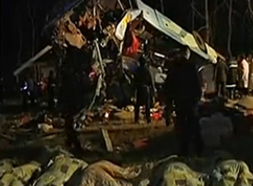 一辆载22人卧铺大巴荆州长江大桥坠落(图)