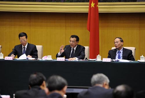 2013年3月26日,国务院召开第一次廉政工作会议,中共中央政治局常委、国务院总理李克强发表讲话。中共中央政治局常委、国务院副总理张高丽等出席会议。中共中央政治局常委、中央纪委书记王岐山等应邀出席会议。摄影:新华社记者饶爱民
