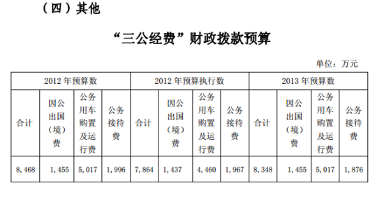 数据显示,中国民用航空局2013年“三公经费”财政拨款预算为8348万元。其中:因公出国(境)费1455万元,公务用车购置及运行费5017万元,公务接待费1876万元。