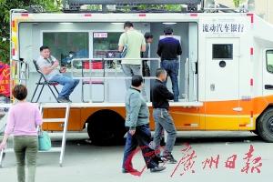 在马路边的流动汽车银行,灾区群众可进行存储、提取等业务。