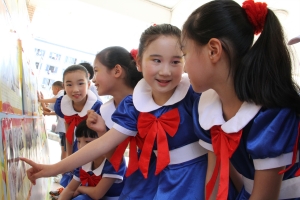 5月28日,状元横街学校举行“红领巾相约中国梦”庆“六一”系列活动,近千名学生载歌载舞欢度属于自己的节日。图为在校园的一角,“我的中国梦——中华复兴之路”图片展吸引了大批学生观看。