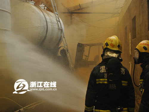 温州消防支队于7时45分接到报警,随即调派龙湾公安消防分局5辆消防车、45名消防官兵赶赴现场。