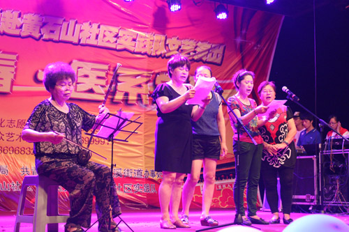 美丽的夜空下,灯光四射,人头攒动,晚会现场热闹非凡。随着主持人宣布“温州医科大学赴黄石山暑期社会实践团美丽艺术汇正式开始!”,场下掌声雷动,一台台精彩的演出陆续亮相。首先是实践团的队员们带来的集体舞《歌舞青春》,他们用热情奔放的舞姿展现青春与活力,为整场晚会打下一个良好的开头。接下来上演的还有民乐串烧《琴红七月》、歌曲表演《someone like you》、二胡演奏《荷塘月色》、街舞《my time》、小品《义诊进社区》等,赢得了居民们的热烈的掌声。其中儿童舞蹈《可爱颂》令人印象深刻,是由实践团队员与社区小朋友合作表演的。灵动的音乐搭配了演员们可爱的动作,充满童趣,让人勾起了童年的记忆。而老年识字班合唱团带来的歌曲《送别》同样叫人拍案叫绝,一群老奶奶雄纠纠气昂昂,唱响夕阳红,唱出了老年人的心声和美好祝愿。