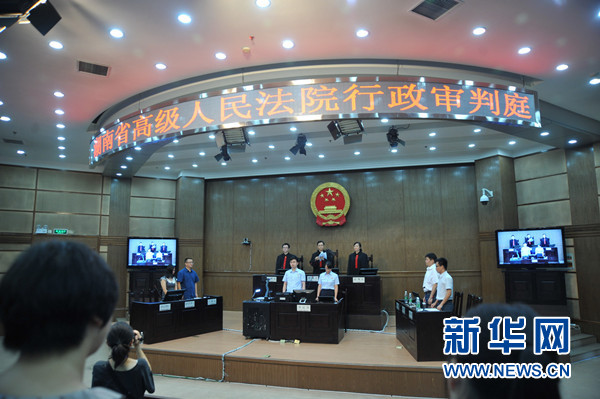 2013年7月15日,“唐慧案”二审作出终审判决,唐慧获得赔偿一审判决被撤销,这是7月15日拍摄的法庭宣读判决书现场。新华社记者龙弘涛摄