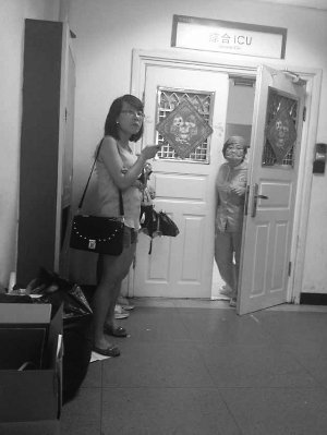 昨天中午,记者赶到天坛医院住院部4层的综合ICU病房时,被摔的女童仍在病房内抢救,门口坐满了等待结果的孩子家属。其中一名身穿白色上衣、深蓝色短裤的女子就是孩子的母亲。她神情哀恸地坐在ICU病房的门外,双手抱着膝盖,一动不动,满眼都是泪水。还有近十名家属也坐在门外,其中一名中年女子不断地流眼泪。据其他患者家属称,她是孩子的姥姥。