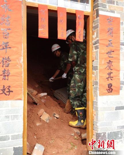 经过半个多小时的搜救,消防官兵利用铁铲、锄头等工具清除滑坡泥土,在房内衣柜的附近挖到了已无生命迹象的被埋妇女。