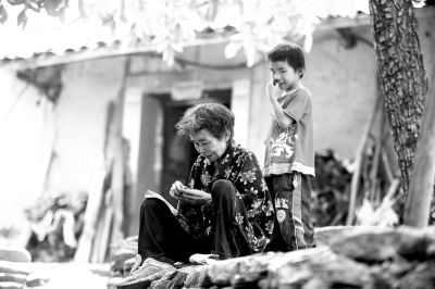 相依为命的祖孙二人。