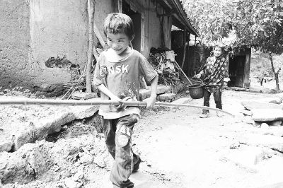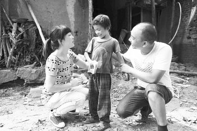 一条石板小道直通向老屋子,一老一小坐在门前,见有生人到来,男孩迅速跑向屋后的树林。“龙龙,阿姨又来看你了,不要跑。”老人喊道。可是,孩子却已没了踪影。