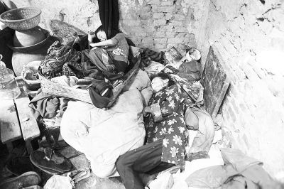 老屋破烂,祖孙俩在簸箕里睡觉