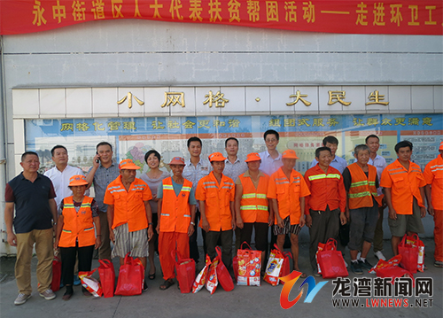 龙湾新闻网讯 为表示人大代表对文明、卫生城市创建工作的关心支持,传递人大代表的爱心,8月20日下午3时,永中街道人大工委利用代表们捐助的爱心基金,组织部分人大代表到永中街道环卫所,看望慰问顶着烈日仍坚守岗位的贫困环卫工人,向他们送上了夏日清凉用品和慰问金,并嘱吒他们注意夏日避暑和自身安全。