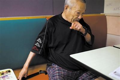 鲁大爷称因欠房租被房东赶出来,在肯德基过夜。记者 王嘉宁摄