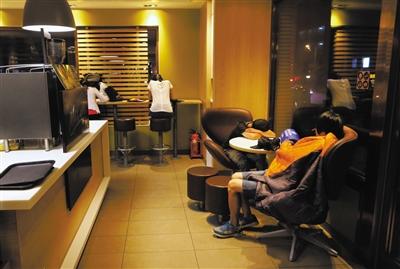 昨日凌晨,方庄一家肯德基店内有人过夜。记者 王嘉宁摄