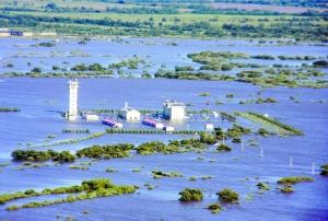 在我国领土最东端的黑瞎子岛,从8月19日起,这座位于黑龙江和乌苏里江交汇处的岛屿就完全被洪水淹没,从空中看去下面一片泽国。岛上通往内陆的唯一通道乌苏大桥也因引桥被洪水淹没而中断。目前,岛上除边防部队仍继续留守外,施工人员等临时居住人口已全部撤离。