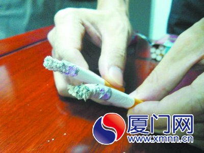真烟烟灰(左)呈柱形,而且均匀规则,而假烟烟灰(右),烧到一半就分叉。