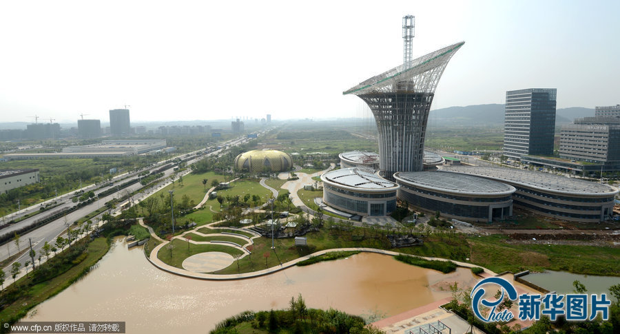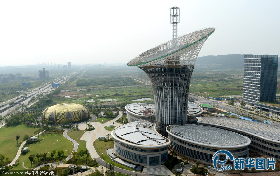 2013年8月29日,武汉,国内最大的仿生建筑在汉主体完工,这也是武汉未来科技城的首个地标性建筑,为新能源研究院的办公场所。图片来源:CFP