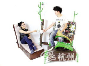 充满想象力的创意者潘午天同学,即将去德国继续深造,她说,“审美的意识变革与材料更替,使人们比以往更为频繁地进行装修活动,一批批的二手大件家具被闲置,成为鸡肋。我们设计的一组作品参加比赛,就是想告诉大家,开动创意,可以让它们升值为装置艺术品,而且是独一无二的,这比家具市场里买的所有东西都有价值。”