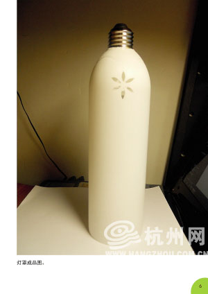潘培同学设计的“小资台灯”看起来很“拉风”,可它的前生却是平日生活中最常被丢弃的各类饮料瓶。“与其苦苦寻找其他素材,不如从实际出发,好好利用最多的废弃物。各种饮料瓶形态各异,利用范围广,造型多样。”潘培同学说。