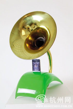 另外,他们寻获了一个废弃的二手圆号,通过绿色设计理念,把它改造成纯物理扩音机,以不插电的形式,将手机的功放音乐扩音10倍左右,由于黄铜特有的乐器特征,将音色更加润化。