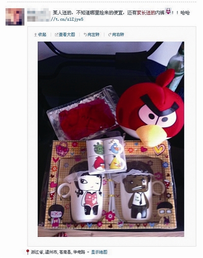 记者昨日登陆新浪微博,输入“学生送的”、“家长送礼”等关键词,在高档检索里将地点锁定浙江温州,结果搜出了近三年来不少老师们的“礼物秀”。