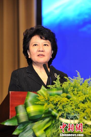 第七届华商企业科技创新合作交流会10日在山东省济南举行。来自英国、美国、马来西亚、新加坡等国家和地区的300为海外华侨华人参加本次“华交会”。图为中国国务院侨务事务办公室主任裘援平出席开幕式并致辞。