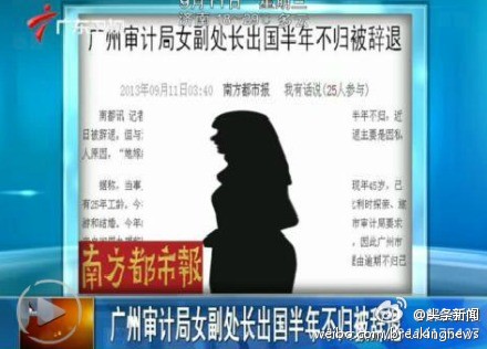 广州女副处长出国半年不归被辞退