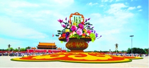 一年一度的国庆摆花即将拉开帷幕。昨天,北京市园林绿化局公布了今年的国庆摆花方案。最受市民瞩目的天安门广场中心花坛今年的造型是一个高18.2米的巨型花果篮。