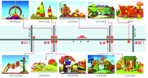 长安街沿线,建国门至复兴门之间,将以“实现中国梦”为主线,布置10处立体花坛。10处立体花坛的具体位置分别是建国门桥区、东单路口四个把角、西单路口四个把角和复兴门桥东北角。