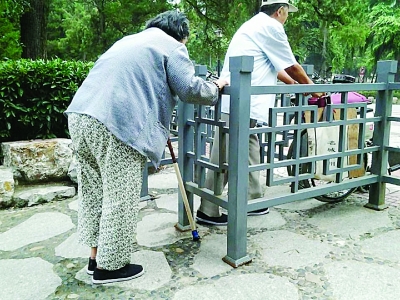 南京公园入口S形栏杆难为轮椅老人(图)