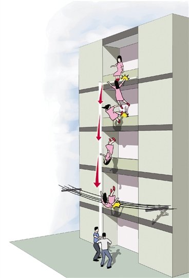 女子突然坠落两位民工救命一托