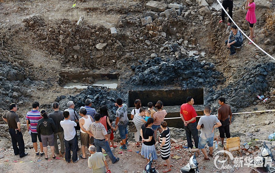 劳动东路采菱桥附近东城明居小区西边一条道路施工时,无意中发现了一处墓葬。记者赶到现场时,文物工作人员正在对墓葬群进行考察。部分石盖已经被文物工作人员打开。