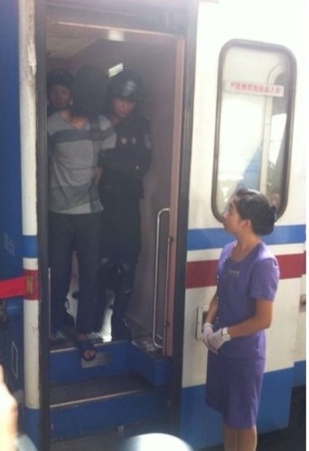 温州网9月22日讯(通讯员杨继划) 9月22日15时30分,由贵州开往温州的动车驶入温州火车站。犯罪嫌疑人杨某和黄某在几名龙湾民警的押解下,走出车站,随即被押进囚车,送往温州市看守所羁押。