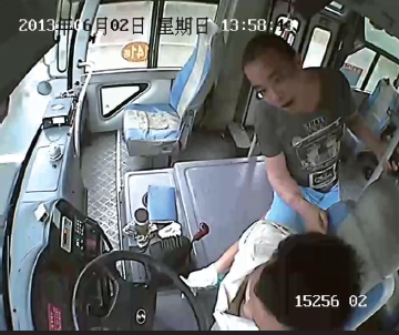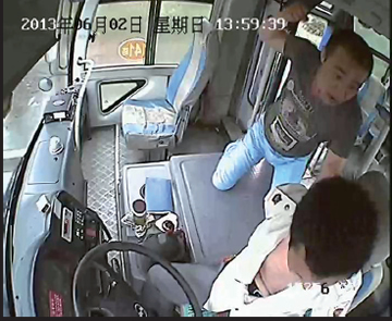 拳打脚踢时,他不顾公交车正在行驶