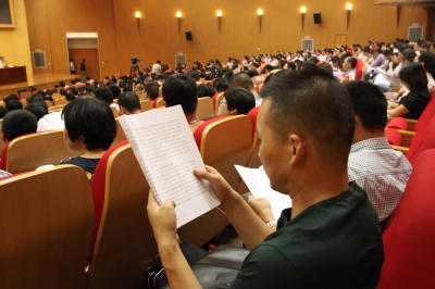 改作风从改会风开始,此次会议率先做了一道效能“加减题”。在形式上做“减法”,会场刮起“简朴风”,议程缩减,文件精简,发言“剪”短。会场,每个与会人员收到一份《关于进一步改善和优化发展软环境的若干意见》,3个附件,30页纸,便概括了今后一个阶段我区优化软环境的一系列举措。
