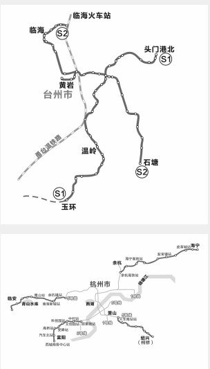 台州都市圈:2条,分别为临海至石塘S2线(近期建设新前站至白云山站),头门港至台州至温岭S1线(近期建设白云山站至体育场路站)。