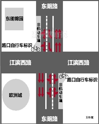 江滨路东明路卡口示意图。